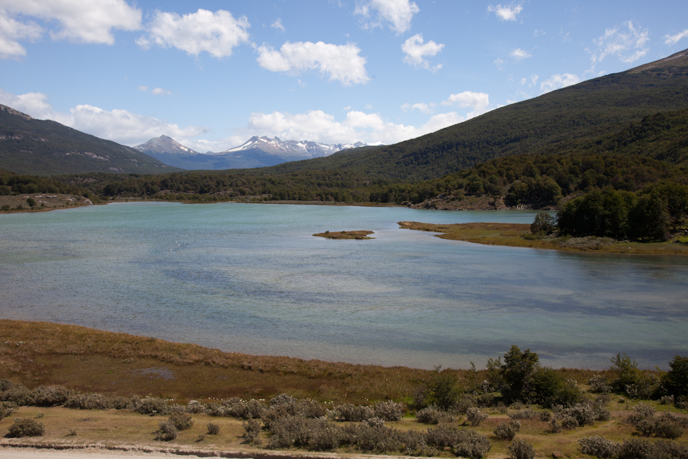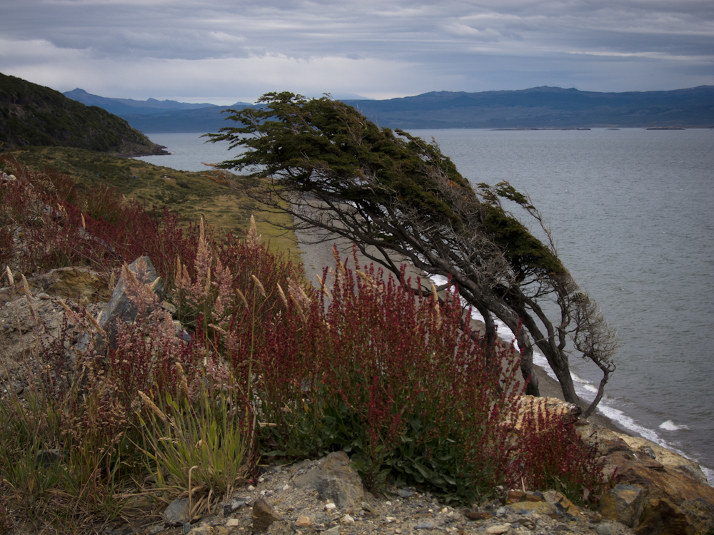 Finally, we spent an afternoon hiking in Tierra del Fuego National Park, the southern most national park in the world. Once we recovered from the shock of the cost of getting there (85 pesos each, about $21.25US) and the daily park entrance fee (also 85 pesos each), we did enjoy hiking the Costera trail that followed the coastline of the Beagle Channel for about 8 km. We saw some beautiful and varied scenery of majestic, snow-capped mountains, dense forest, pretty meadows and rugged beaches.