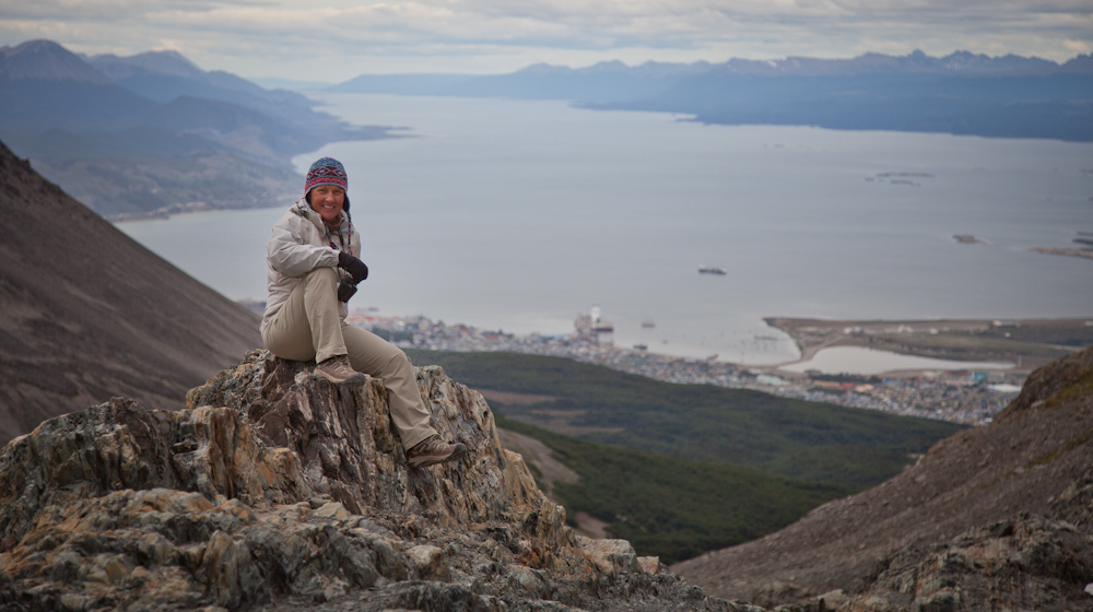 Checking out the view of the Beagle Channel and Ushuaia below.