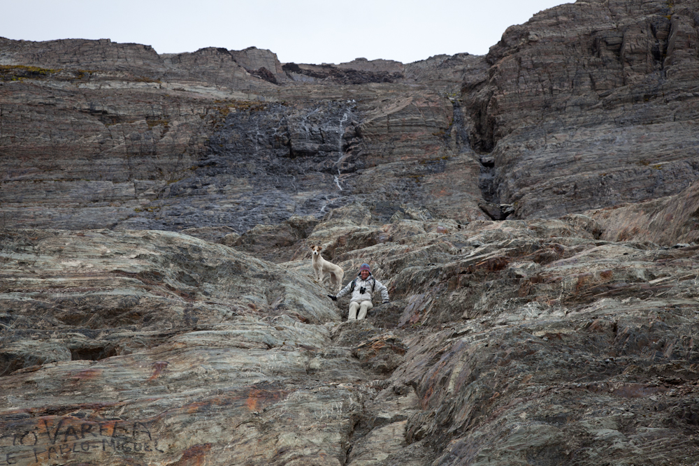 Where’s Christina? At the glacier, with our new canine friend.