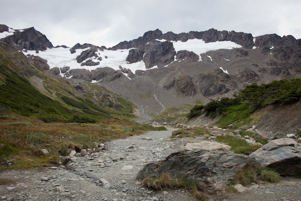 The weather in Ushuaia is quite unpredictable. We were surprised with the mild temperatures when we arrived, probably mid-teens during the day. Most days have been a mix of sun and cloud, some days more windy than others. The air is cool so when the sun is not out and the wind picks up, it’s time to put on the wooly hat and mitts, and add a layer or two. When hiking, we were always prepared for any type of weather and it was not uncommon to strip down to our t-shirts only to bundle ourselves up with fleece, windbreaker, hats and gloves all within a couple of hours. It rained hard one night, and we’ve had some very slight, barely noticeable sprinklings of rain during the day. Again, we’ve been lucky as far as the weather is concerned. We’re also enjoying the long days. As I finish off this post at 10:45 pm, the sun is just starting to set. It seems our bodies have adjusted accordingly and we are going to bed much later and sleeping in each morning until around 9:00 which is quite late for us. It’s strange how daylight affects your natural rhythms. We’re even eating dinner later, 9:00 or later each night. But that may just be because we’re in Argentina where many restaurants close after lunch and don’t even open until 8:00 at night.